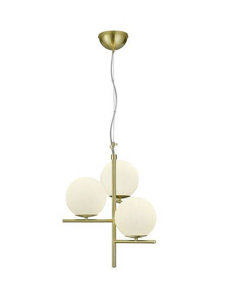 | Kurzbeschreibung | Pendell. PURE, 3x E14 o.LM|H.150 x D.40cm Glas D.16cm|Metall messing matt,Glas Weiß |