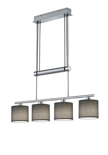 | Kurzbeschreibung | JoJo-Pendel GARDA,4xE14,o.LM,|Stoffschirme grau,Nickel matt|B.77/H.95-150/T.13,5cm |