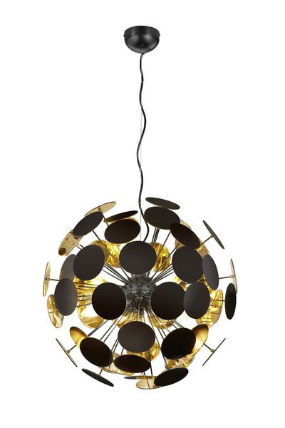 | Kurzbeschreibung | Pendel DISCALGO,6xE14/ohne LM,|D.54cm,61 Kunststoffscheiben|schwarz innen goldfarbig |