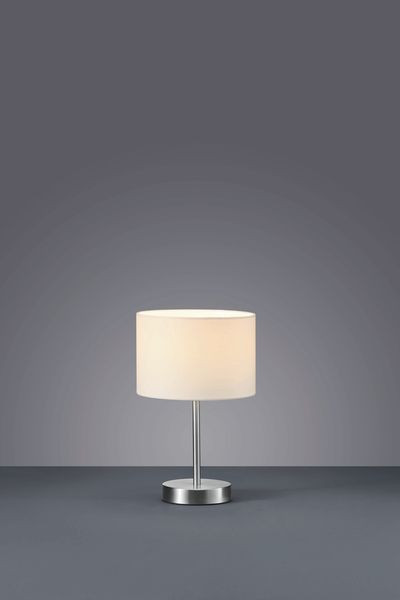 | Kurzbeschreibung | Tischl.HOTEL, 1xE14,max.40W,|Höhe 32cm,Ausf.Nickel matt/|Stoffschirm weiß,D.20cm |
