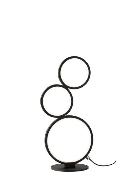 Mit ihren drei aufeinander gestellten Ringen unterschiedlichen Durchmessers, ist die Tischleuchte RONDO ein echter Eyecatcher. Die Tischleuchte verfügt über einen integrierten Dimmer, der über den Schnurschalter gesteuert wird. Damit lässt sich die Helligkeit der in den jeweiligen Kreis-Innenseiten verbauten LEDs flexibel steuern. Die 45 cm hohe Tischleuchte ist ein wahres Deko-Element und wertet jeden Wohnraum stilvoll auf. Dank der Farbgestaltung in Schwarz matt, kann die Leuchte mit vielen Einrichtungsstilen kombiniert werden. Darüber hinaus verfügen die Leuchten über moderne LED-Technologie, die für eine hohe Lichtqualität steht. LED-Lichtquellen zeichnen sich durch eine lange Lebensdauer und eine geringe Wärmeentwicklung aus.