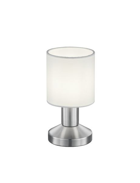 | Kurzbeschreibung | TOUCH-TL GARDA,1xE14,o.LM,|H.18 cm,Nickel matt,Stoffsch.|Weiß,D.9,5cm,On-Off-Touch |