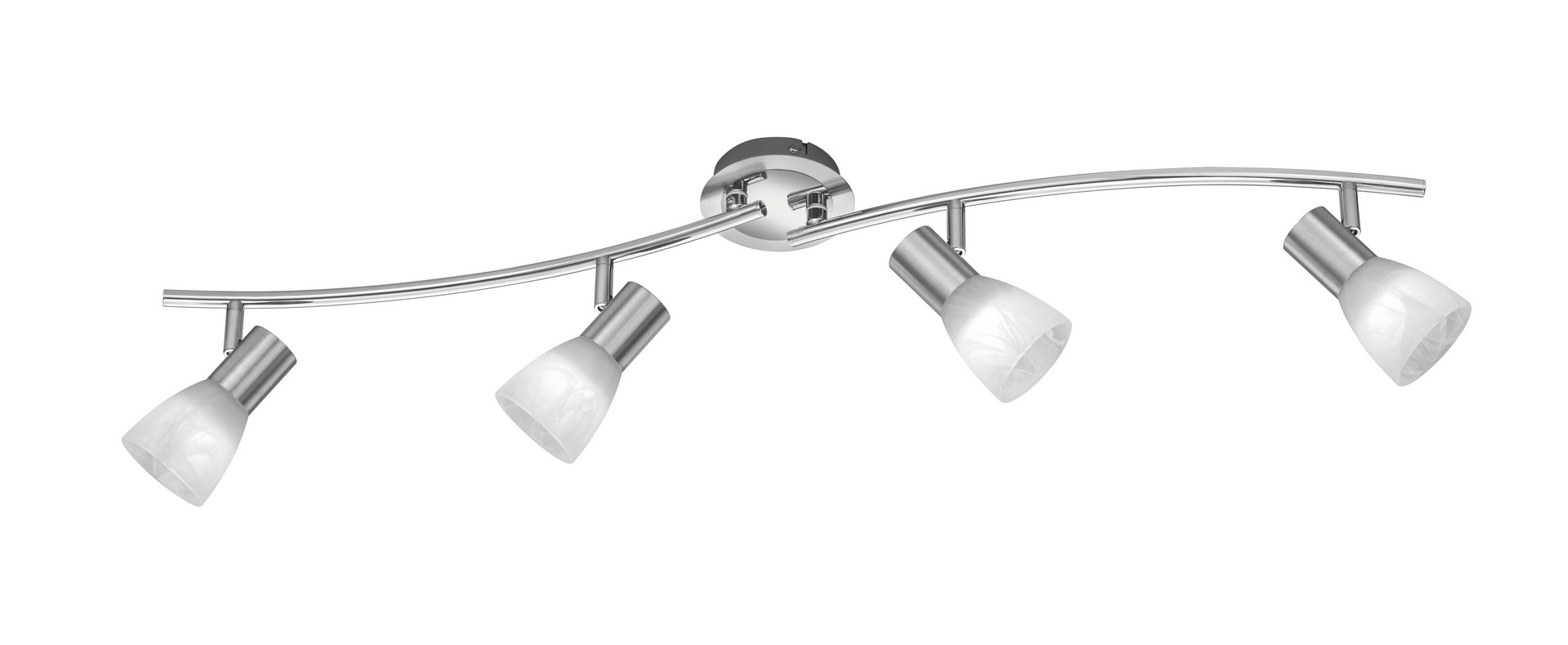 Der moderne vierflammige Strahler LEVISTO leuchtet Ihren Wohnraum mit einem warmweißen Licht aus und schafft ein wohnliches Ambiente. Dadurch, dass die Leuchte schwenkbar ist, können Sie die Lichtquelle wie gewünscht ausrichten. Dank der Zeitlosigkeit und der hochwertigen Verarbeitung werden sie lange Freude an der Leuchte haben. Sie hat eine Breite von 88 cm, eine Höhe von 19 cm und eine Tiefe von 11 cm. Die Farbgebung in Nickel matt in Verbindung mit dem alabasterfarbigen Glas verleiht der Leuchte einen edlen Touch und lässt sich sowohl mit einem modernen als auch mit einem klassischen Einrichtungsstil kombinieren. Darüber hinaus verfügen die Leuchten über moderne LED-Technologie, die für eine hohe Lichtqualität steht. LED-Lichtquellen zeichnen sich durch eine lange Lebensdauer und eine geringe Wärmeentwicklung aus.