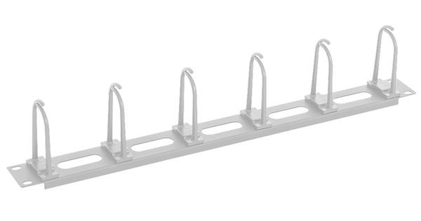 19“-Kabelführungspanel 1HE, 6 große Kunststoffbügel, ovale Öffnungen, geeignet für niedrigere Belastung