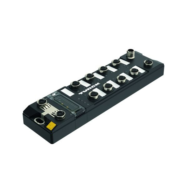 Kompaktes Multiprotokoll-I/O-Modul für Ethernet, 8 digitale pnp Eingänge und 8 digitale pnp Ausgänge 2A, PROFINET Device, EtherNet/IP Device, Modbus TCP Server, CC-Link IE Field Basic, Integrierter Ethernet-Switch, Unterstützt 10 Mbps / 100 Mbps, 2x M12, 4-pol, D-kodiert, Ethernet-Feldbusverbindung, PROFINET S2 Systemredundanz, Glasfaserverstärktes Gehäuse, Schock- und schwingungsgeprüft, Vollvergossene Modulelektronik, Schutzart IP65/IP67/IP69K, M12, 5-polig, L-kodierter Steckverbinder zur Spannungsversorgung, Galvanisch isolierte Spannungsgruppen unterstützen passive Sicherheit, ATEX Zone 2/22, CCC-Ex, Eingangsdiagnose pro Steckplatz, Max. 2A pro Ausgang, Ausgangsdiagnose pro Kanal, ARGEE programmierbar