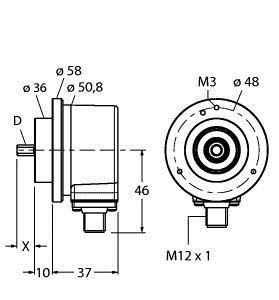 Rotative Messtechnik, Inkrementaler Drehgeber, Klemmflansch, Ø 58mm, Vollwelle, Ø 10mm x 20mm, Optisches Messprinzip, Wellenmaterial: rostfreier Stahl, 10...30 VDC, M12x1 Steckeranschluss, 8-polig, Gegentakt mit Invertierung, Impulsfrequenz max. 300kHz, Schutzart IP 67 wellenseitig, -40 ... +85°C, max. 6000 U / min (Dauerbetrieb 3000 U / min), Inkremental/Auflösung: 1024