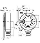 | Kurzbeschreibung | Inkrementaler Drehgeber, Industrial-Line, Auflösung Inkremental 5000 ppr, Flansch mit langem Federelement, Ø 100mm, Hohlwelle, Ø 30mm |
