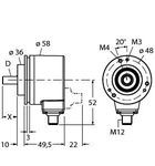 | Kurzbeschreibung | Absoluter Drehgeber - Multiturn, Industrial-Line, Klemmflansch, Ø 58mm, Vollwelle, Ø 10mm x 20mm, Optisches Messprinzip |