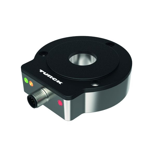ntactless Encoder with Stainless Steel Housing, SSI, Premium Line, Operating voltage 15…30 VDC, Compact, rugged housing, Active face, plastic PA12-GF30, Housing, stainless steel V4A (1.4404) , Status displayed via LED, SSI output, 25 bit, Gray-coded, SSI clock rate: 62.5 KHz … 1 MHz, Single or multiturn, length of data frame and bit coding parametrizable via PACT, ware, Default settings: Singleturn Bit 0 … Bit 15, Multiturn Bit 16 … Bit 21, Status Bit 22 … Bit 24, Zero point, sync./async. operating mode adjustable via Easy Teach , Compatible with all standard SSI masters, In sync. mode, jitter < 5 µs required on the master side, Immune to electromagnetic interference , 15…30 VDC, Male M12 x 1, 8-pin