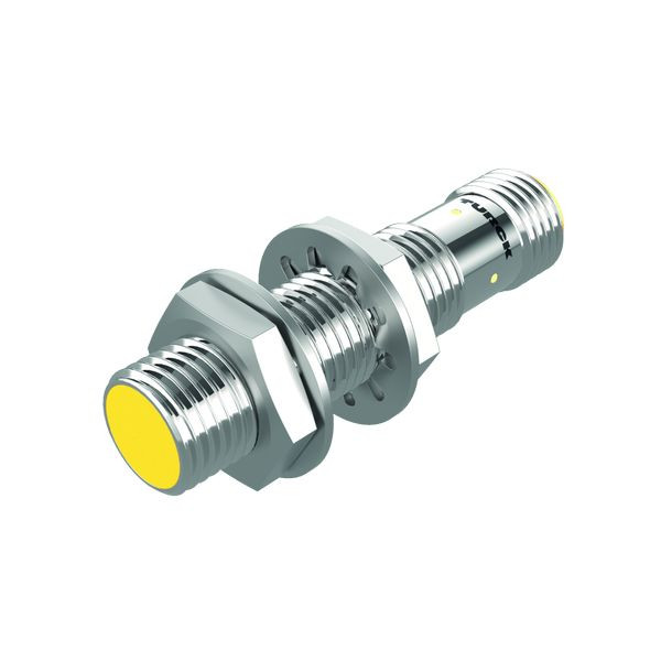 Induktiver Sensor, Bemessungsschaltabstand 3 mm, Einbaubedingungen bündig, Gewinderohr, M12 x 1, Edelstahl, 1.4301, Faktor 1 für alle Metalle, Schutzart IP68, magnetfeldfest, erweiterter Temperaturbereich, hohe Schaltfrequenz, DC 3-Draht, 10...30 VDC, Schließer, PNP-Ausgang, Steckverbinder, M12 x 1