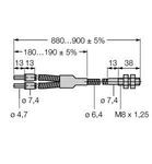 Glas-Lichtleiter, Gabelleiter, Betriebsart: Reflexionslichttaster / -schranke, Edelstahlummantelung, flexibel, Betriebstemperatur Lichtleitermantel: -140…+249 °C, Fühler-Endhülse: Gewinde M8 x 1,25, Lichtleiter-Bündeldurchmesser: 3.2 mm, Gesamtlänge des Lichtleiters: ± 914 mm