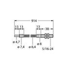 Glas-Lichtleiter, Einzelleiter, Betriebsart: Einweglichtschranke, Edelstahlummantelung, flexibel, Betriebstemperatur Lichtleitermantel: -140…+249 °C, Fühler-Endhülse: Messing, Gewinde 5/16”-24, Betriebstemperatur Lichtleiterspitze: -140…+249 °C, Lichtleiter-Bündeldurchmesser: 3.2 mm, Gesamtlänge des Lichtleiters: ± 914 mm