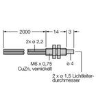 Kunststoff-Lichtleiter, Gabelleiter, Betriebsart: Reflexionslichttaster / -schranke, Polyethylen-Ummantelung, flexibel, Betriebstemperatur: -30…+70 °C, Gerades, konfektionierbares Kabel, Fühler-Endhülse: Gewinde M6 x 0,75, Lichtleiter-Kerndurchmesser: 1.5 mm, Gesamtlänge des Lichtleiters: ± 1829 mm