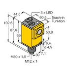 | Kurzbeschreibung | Ultraschallsensor, Reflexionstaster, mit Analogausgang, max. Reichweite 1400 mm, Messbereich durch Teachtaster oder Steuerleitung einstellbar, |