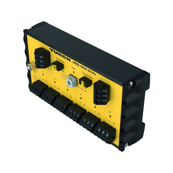 IP20-Verteilerbaustein, sechskanalig, FOUNDATION fieldbus und PROFIBUS-PA, Verteilerbaustein für DIN-Hutschienen-Montage, mit Kurzschlussschutz pro Stichleitung , Zuschaltbarer Abschlusswiderstand, Kabelschirmung: Kapazitive bzw. direkte Verbindung mit Gehäusepotential über einen Schalter wählbar, Aluminium-Gehäuse, Entity und FISCO-konform gemäß IEC 60079-11
