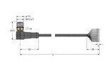 Aktuator- und Sensorleitung / PVC, Anschlussleitung, Bemessungsspannung 30 V, Leitungslänge5 m, M12-Stecker, gewinkelt, 12-polig, Mantelmaterial: PVC, Mantelfarbe: schwarz, Chemikalien- und ölbeständig, Flammwidrig, Beständig gegen Säuren und Laugen, Mikroben- und hydrolysefest, LABS-frei, Schutzart: IP67, IP69K, Leitungslänge: 5.0 Meter
