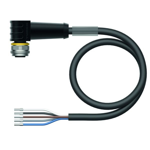 Aktuator- und Sensorleitung / PVC, Anschlussleitung, Bemessungsspannung 60 V, Leitungslänge10 m, M12-Kupplung, gewinkelt, 5-polig, Schirm auf Überwurfmutter/-schraube aufgelegt, Mantelmaterial: PVC, geschirmt, Mantelfarbe: schwarz, Chemikalien- und ölbeständig, Flammwidrig, Beständig gegen Säuren und Laugen, Mikroben- und hydrolysefest, LABS-frei, Schutzart: IP67, IP69K, Leitungslänge: 10 Meter