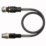 Aktuator- und Sensorleitung / PUR, Verbindungsleitung, Leitungslänge2 m, M12-Kupplung, gerade, 4-polig + PE, mit 2fach LED (pnp, gelb, grün), Rundumsicht, M12-Stecker, gerade, 4-polig + PE, Mantelmaterial: PUR, Mantelfarbe: schwarz, Schleppkettentauglich, Chemikalien-, UV- und ölbeständig, Flammwidrig (FT2 gemäß UL 1581, IEC 60332-2-2), Schweißfunkenbeständig, Halogen-, silikon-, PVC- und LABS-frei, Besonders abriebfest, Schutzart: IP67, IP69K, Leitungslänge: 2.0 Meter