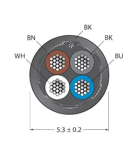 | Kurzbeschreibung | Aktuator- und Sensorleitung / PUR, Meterware, Bemessungsspannung 300 V, Leitungslänge100 m, 4-polig, Mantelmaterial: PUR, geschirmt |