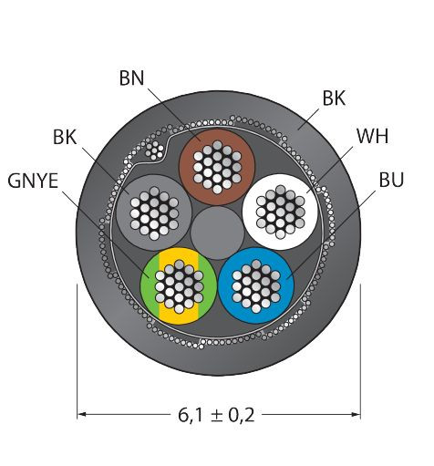 | Kurzbeschreibung | Aktuator- und Sensorleitung / PVC, Meterware, Bemessungsspannung 300 V, Leitungslänge500 m, 4-polig + PE, Mantelmaterial: PVC, geschirmt |