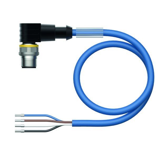 Aktuator- und Sensorleitung / PVC, Anschlussleitung, Bemessungsspannung 250 V, Leitungslänge2 m, M12-Stecker, gewinkelt, 4-polig, Mantelmaterial: PVC, Mantelfarbe: blau, Flammwidrig, Chemikalien- und ölbeständig, Mikroben- und hydrolysefest, LABS-frei, Schutzart: IP67, IP69K, Leitungslänge: 2.0 Meter