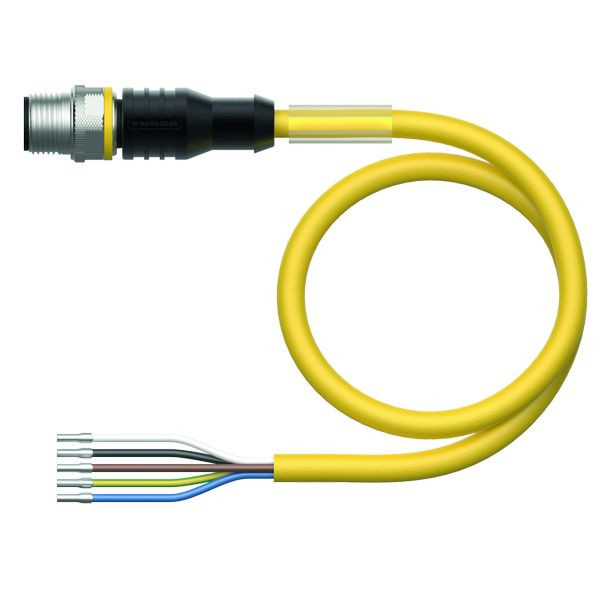 Aktuator- und Sensorleitung / PVC, Anschlussleitung, Bemessungsspannung 60 V, Leitungslänge10 m, M12-Stecker, gerade, 4-polig + PE, Mantelmaterial: PVC, Mantelfarbe: gelb, Chemikalien- und ölbeständig, Flammwidrig, Beständig gegen Säuren und Laugen, Mikroben- und hydrolysefest, LABS-frei, Schutzart: IP67, IP69K, Leitungslänge: 10 Meter