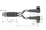 Kurzbeschreibung Zweifachverteiler, Y-Verteiler mit Leitung, Stecker M12x1 - 2x Kupplung M12x1, Bemessungsspannung 250 V, Leitungslänge2 m, Mantelmaterial: PVC