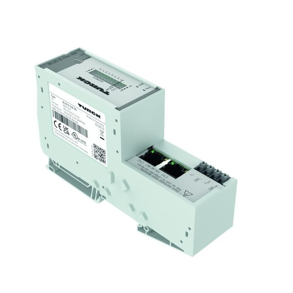 Gateway für das BL20 I/O-System, Multiprotokoll Interface für Ethernet, Schutzart IP20, 2 x Endwinkel BL20-WEW-35/2-SW, 1 x Abschlussplatte BL20-ABPL, LEDs zur Anzeige von Versorgungsspannung, Sammel- und Busfehlern, Multiprotokoll-Gateway zwischen dem BL20-System und den Ethernet-Protokollen Modbus TCP, EtherNet/IP™ und PROFINET (ab VN 03-00), Das PROFINET-Protokoll unterstützt Fast Start-Up (FSU), Das EtherNet/IP™-Protokoll unterstützt QuickConnect (QC), Integrierter Switch, 10/100 Mbit/s, zwei RJ45-Steckverbinder zum Feldbusanschluss, Push-in-Klemmen zum Anschluss der Spannungsversorgung