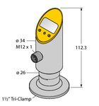 Drucksensor (frontbündig), mit Analogausgang und einem Transistorschaltausgang pnp/npn, Ausgang 2 als Schaltausgang umprogrammierbar, Frontbündige Membran durch Druckmittlersystem, Ablesen der eingestellten Werte ohne Werkzeug möglich, Programmierschutz durch versenkten Taster und Lock-Funktion, Permanente Anzeige der Druckeinheit (bar, psi, kPa, MPa, ...), Druckspitzenspeicher, Druckbereich -1... 16 bar rel.