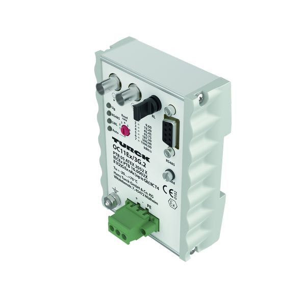 I/O-System excom, PROFIBUS-DP – LWL-Koppler für Zone 2, Gerät für die Datenübertragung zwischen elektrischen und optischen Feldbus-Stromkreisen, max. 31 Teilnehmer am elektrischen Anschluss möglich, OM1 (62,5/125) bis zu 2500m übertragen, OM2 (50/125) bis zu 1500m übertragen, Montage in Zone 2 möglich, Hinweis: Idle-Pegel (Ruhepegel) entspricht aktiv Licht