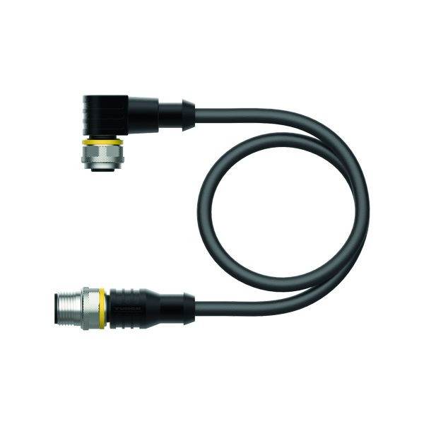 RFID-Leitung Economy-Ausführung, Verbindungsleitung, Bemessungsspannung 30 V, Leitungslänge25 m, 4-adrig, AWG 24 / AWG 22, Mantelmaterial: PUR, Farbe: schwarz, Halogenfrei, LABS-frei, Schirm: Aluminiumfolie, verzinntes Kupfergeflecht, Manteldurchmesser: 6.9 mm, schleppkettentauglich, ölbeständig, flexibel, Leitung UL Style 20549, M12-Stecker, gerade, A-kodiert, M12-Kupplung, gewinkelt, A-kodiert, Leitungslänge: 25 Meter