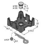 Zubehör, Montagehalterung, Halterung mit M5-Gewindehülse zur Schraubbefestigung von Datenträgerbauform Q51, Die Verwendung des Sicherungsstiftes 4.5mm gewährleistet einen Schutz vor Verdrehen der Halterung bzw des Datenträgers , Zur Montage auf Metall geeignet, Zum wiederholten Einsatz in Hochtemperatur geeignet , Nur zur einmaligen Montage (Einrasten des Datenträgers in die Halterung) geeignet, Durch die Verwendung der Halterung ergibt sich ein Abstand von Metall zum Datenträger von 12mm