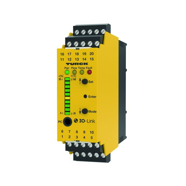 Auswerteeinheit, Für den Anschluss von Strömungssensoren der Serie FCS und FCI, IO-Link Device mit Relaisschaltausgängen, Relaisausgang für Strömung, Temperatur und Fehler, Schaltpunkteinstellung ohne Einlernen der Strömungsgrenzen (QuickTeach), LED Band zur Anzeige von Strömungsgeschwindigkeit und Medientemperatur, Überwachung des Arbeits- und Anzeigebereiches, Sensorseitige Drahtbruch- und Kurzschlusserkennung, Betrieb wahlweise im Standard IO oder IO-Link Mode, Parametrierung via Touch Button und softwareunterstützt via IO-Link
