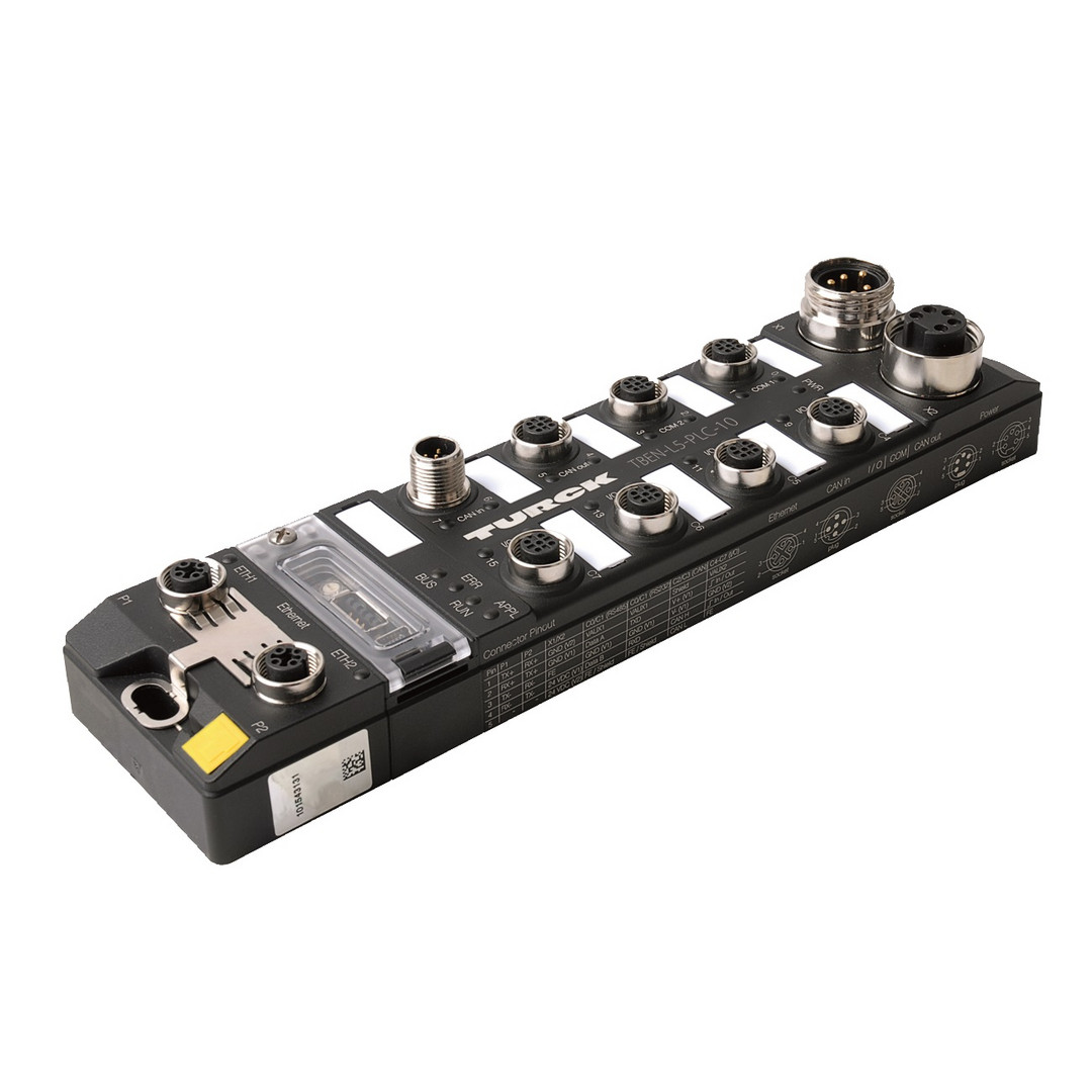 Kompakte SPS in IP67, CODESYS V3 - mit WebVisu Lizenz, CODESYS V3 PLC Runtime, CODESYS WebVisu Lizenz, CODESYS OPC-UA Server / Client, IoT-Gateway für die Turck Cloud, PROFINET Controller / Device, EtherNet/IP™ Scanner / Device, EtherCAT Master, Modbus TCP Master / Slave, Modbus RTU Master / Slave, CANopen® Manager / Device, SAE J1939 Manager, Serielle RS232 / RS485 Schnittstellen , Ethernet 2x M12, 4-pol, D-kodiert, Switched oder Dual-MAC-Mode, 10 Mbps / 100 Mbps, Glasfaserverstärktes Gehäuse, Schock- und schwingungsgeprüft, Vollvergossene Modulelektronik, Schutzart IP65/IP67/IP69K, ATEX Zone 2/22, CCC-Ex, 8 universelle digitale I/O-Kanäle, Sensorversorgung max. 2 A pro Steckplatz, Eingangsdiagnose pro Steckplatz, Max. 2 A pro Ausgang, Ausgangsdiagnose pro Kanal