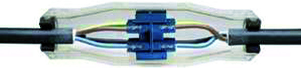 aus schlagfestem, transparentem Polycarbonat in Schnapptechnik, mit speziell an die Kabeldurchmesser angepassten Schaumstoffdichtungen, Ausführung mit Klemmstein - systemgeprüft nach DIN VDE 0278-623, Klemmstein (nach DIN VDE 0220 T.2/10.77), Lieferform mit RAPID 4300 Vergussmasse im Doppelkammerbeutel Verbindungsmuffe für Kabelquerschnitte 4 x 16 mm² bis 4 x 25 mm². Mit Klemmstein KS2. Mit Vergußmasse RAPID 4300B im Doppelkammerbeutel. Muffengehäuse: Polycarbonat, schlagfest und transparent, in Schnapptechnik. Längswasserdicht. Universell einsetzbar zum Verbinden von ungeschirmten Kunststoffkabeln und Kunststoffleitungen (z. B. N(A)YY, NYM). Innenraum, Freiluft, Erdreich, Wasser. Schnelle und einfache Montage mit sich an die Kabeldurchmesser anpassenden Schaumstoffdichtungen. Systemgeprüft nach CENELEC EN 50393