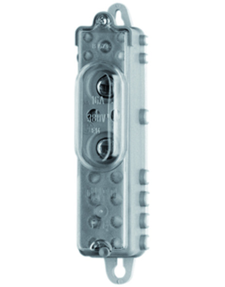 Sockel aus kriechstromfestem PPO, Oberteil aus Polypropylen, Abdeckung aus transparentem Polystyrol. Abgangsklemmen rückseitig verbunden und abgedeckt. PE + N = getrennter Abgang.