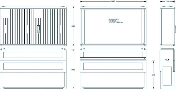 für Freiluftaufstellung mit Sockel, Schwenkhebel mit Einfachschließung, Profilhalbzylinder 40 mm, Baukastensystem mit auswechselbaren Einzelteilen, Tür und Rückwand mit profilierter Oberfläche, Kabelabfangschiene, eine Montageplatte aus Stahlblech, Eingrabtiefe: 600 mm