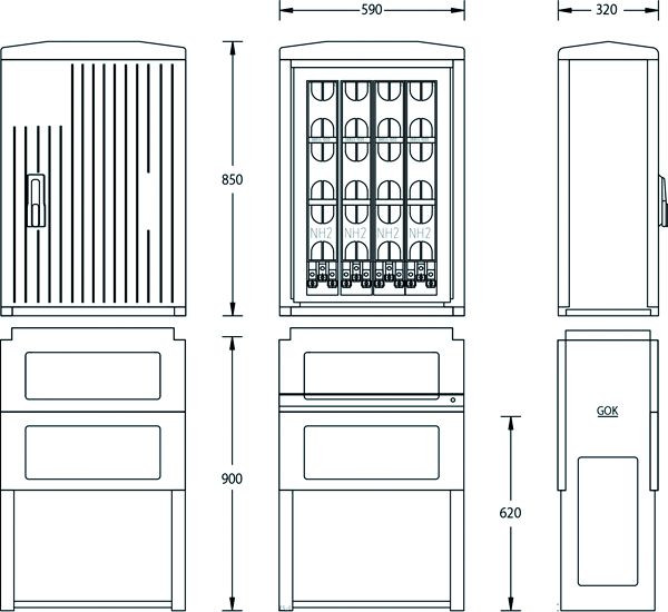 bestückt mit 3-9 Sicherungsleisten NH2 mit Montageplatte, Vorder- und Rückwand profiliert, Stecktüre mit Schwenkhebelgriff und 3-Punkt-Verriegelung, Schutzart: IP44, lichtgrau, RAL 7035