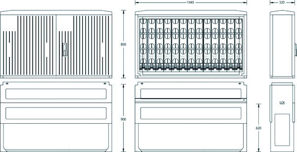 DIN-Größe 3, zwei Türen, 13 Sicherungsleisten NH 2