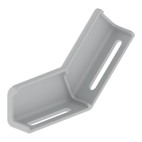 Für vertikale, steigende Richtungsänderungen (+45°). Farbe: grau. Isolierendes Material. Zusätzliche Stabilität für die Kabelbahn. Zubehörteil für Datenleitungen. Sicherheit und schnelle Montage wie bei den Stoßstellenverbinder.