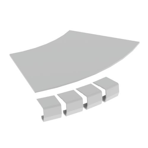 Abdeckung, die ohne Schrauben unter Druck auf die Flachbogen von 90° und 45° mit einem Radius von jeweils R300 mm montiert wird und die Installation vor möglichen Schäden an der Kabelführung schützt. Isolierendes Material. Farbe: Lichtgrau RAL 7035