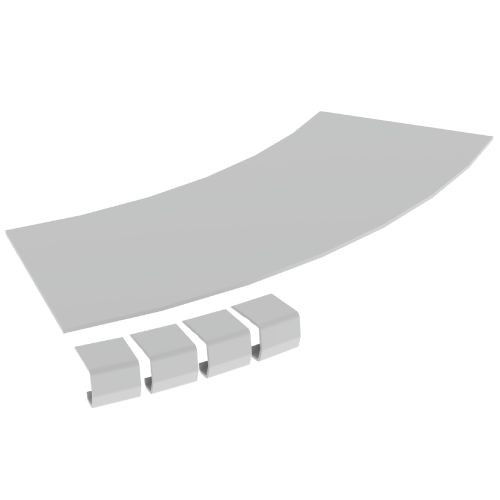 Abdeckung, die ohne Schrauben unter Druck auf die Flachbogen von 90° und 45° mit einem Radius von jeweils R600 mm montiert wird und die Installation vor möglichen Schäden an der Kabelführung schützt. Isolierendes Material. Farbe: Lichtgrau RAL 7035