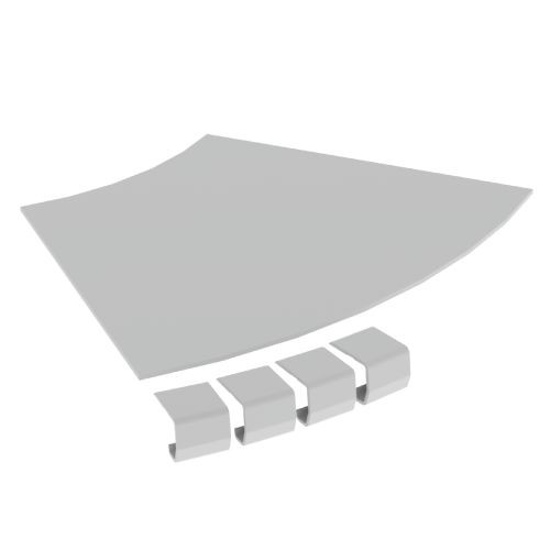 Abdeckung, die ohne Schrauben unter Druck auf die Flachbogen von 90° und 45° mit einem Radius von jeweils R300 mm montiert wird und die Installation vor möglichen Schäden an der Kabelführung schützt. Isolierendes Material. Farbe: Lichtgrau RAL 7035
