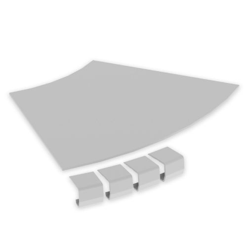 Abdeckung, die ohne Schrauben unter Druck auf die Flachbogen von 90° und 45° mit einem Radius von jeweils R300 mm montiert wird und die Installation vor möglichen Schäden an der Kabelführung schützt. Halogenfreies isolierendes Material. Farbe: Lichtgrau RAL 7035