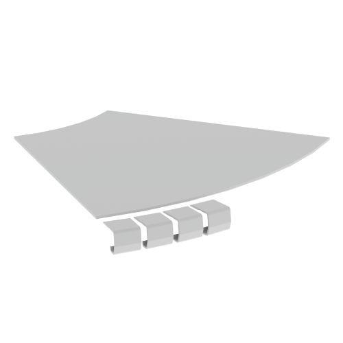 Abdeckung, die ohne Schrauben unter Druck auf die Flachbogen von 90° und 45° mit einem Radius von jeweils R300 mm montiert wird und die Installation vor möglichen Schäden an der Kabelführung schützt. Isolierendes Material. Farbe: Lichtgrau RAL 7035