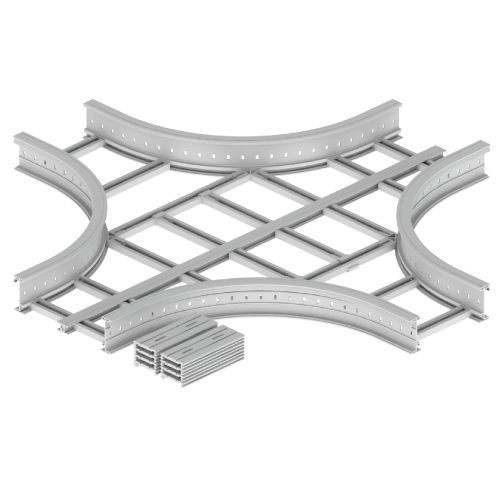 Element zur Ausführung von Kreuzungen zwischen zwei Kabelleiterabschnitten mit einem Krümmungsradius von 600 mm. Stoßstellenverbinder sind zur einfachen Montage im Lieferumfang enthalten. Isolierendes Material. Farbe: Lichtgrau RAL 7035