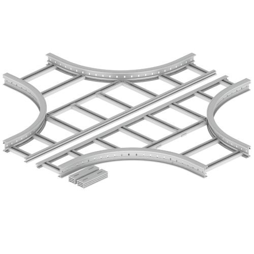 Element zur Ausführung von Kreuzungen zwischen zwei Kabelleiterabschnitten mit einem Krümmungsradius von 600 mm. Stoßstellenverbinder sind zur einfachen Montage im Lieferumfang enthalten. Isolierendes Material. Farbe: Lichtgrau RAL 7035