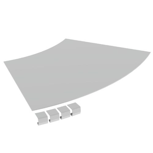Abdeckung, die ohne Schrauben unter Druck auf die Flachbogen von 90° und 45° mit einem Radius von jeweils R600 mm montiert wird und die Installation vor möglichen Schäden an der Kabelführung schützt. Isolierendes Material. Farbe: Lichtgrau RAL 7035