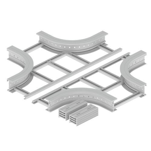 Element zur Ausführung von Kreuzungen zwischen zwei Kabelleiterabschnitten mit einem Krümmungsradius von 300 mm. Stoßstellenverbinder sind zur einfachen Montage im Lieferumfang enthalten. Isolierendes Material. Farbe: Lichtgrau RAL 7035