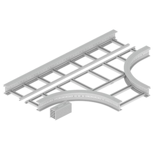 Element zur Ausführung von 90°-Abzweigungen. Krümmungsradius von 600 mm. Stoßstellenverbinder sind zur einfachen Montage im Lieferumfang enthalten. Isolierendes Material. Farbe: Lichtgrau RAL 7035